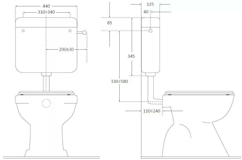 A hátsó bejáratú híd lehetővé teszi a tartály kényelmes elhelyezését és könnyű hozzáférését a szereléshez. Az külső alacsony szintű tartályhoz egy ø 50x44-es kifolyó cső tartozik. A falra szereléshez szükséges készletet is magában foglalja a termék.