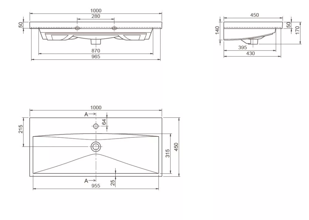 CeraStyle ELITE porcelán mosdókagyló 100 cm - 100 x 45 cm