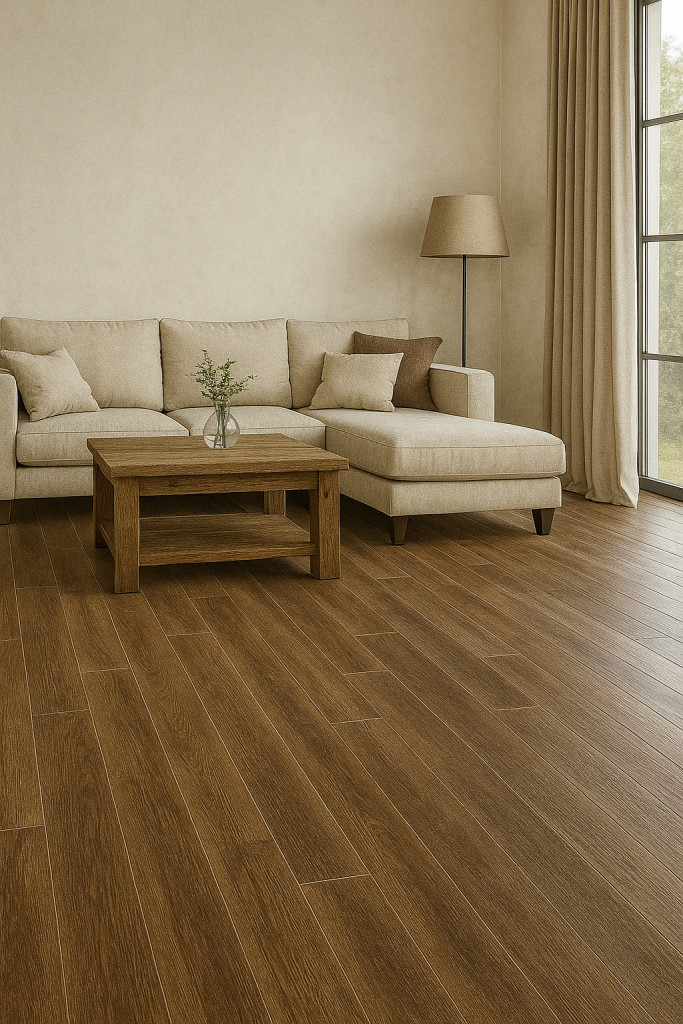 Ez a burkolólap meleg, középbarna dió színvilágával és karakteres erezetével otthonos és elegáns alapot teremt bármely enteriőrben. A részletgazdag, természetes mintázat tökéletesen illeszkedik klasszikus, rusztikus vagy modern környezetbe is. Kiváló választás nappaliba, étkezőbe vagy hálószobába, ahol fontos a tartósság, a csúszásmentes felület és az esztétikus megjelenés. A fa látványát idéző burkolat hosszú távon is megőrzi kifinomult hatását, miközben praktikus és könnyen karbantartható megoldást kínál.