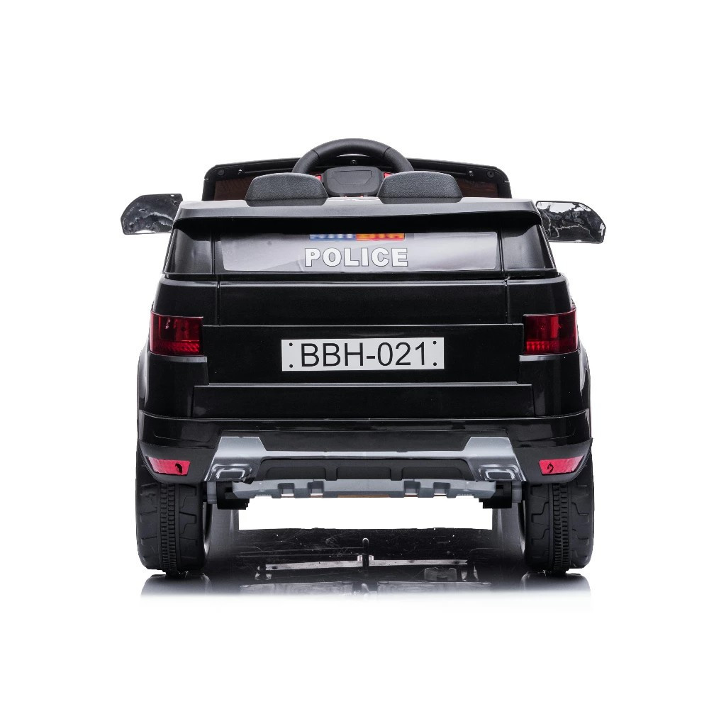 Az erős, 12V-os újratölthető akkumulátor, a szülők számára készült rádióvezérlés és a töltő tartozékok a termékhez. A rendőrautó fényszórókkal, MP3 csatlakozóval, visszapillantó tükrökkel és hanghatásos kormánykerékkel rendelkezik.