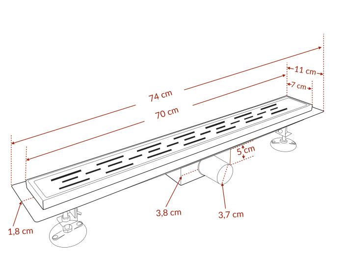 Acél alapteset szigetelő peremmel van ellátva. A termék csiszolt fényes ráccsal van ellátva. Alacsony beépítésű, közvetlenül zuhanyajtó alá vagy fal mellé építhető. Sav és lúgálló ami szintén hatalmas előny takarítás szempontjából. , ugyanis ennek a tulajdonságának köszönhetően nem roncsolódik erős tisztítószerek használatakor. A szifon a csomag részét képzi.