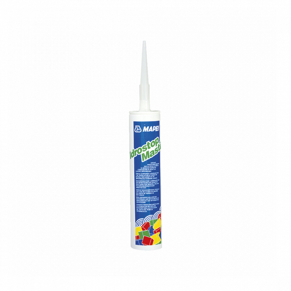 Az Idrostop Mastic egykomponensű, MS polimer bázisú oldószermentes, használatra kész ragasztó. A tubusból kinyomva vízszintes és függőleges felületre is felkenhető, állékony ragasztóként viselkedik, amely a levegő páratartalmától térhálósodik, és +10°C és +40°C között rugalmas marad. Az Idrostop Mastic tökéletesen tapad nyirkos aljzatokra is, amennyiben azok tökéletesen tiszták és szilárdak. A felhordáshoz a ragasztót nyomja az előre leszabott Idrostop profilra vagy közvetlenül a betonra. Ezután az Idrostop profilt minden irányban kissé megmozgatva nyomja az aljzatra, hogy minden ponton tökéletesen tapadhasson. A betonozást 24 óra múlva lehet megkezdeni.