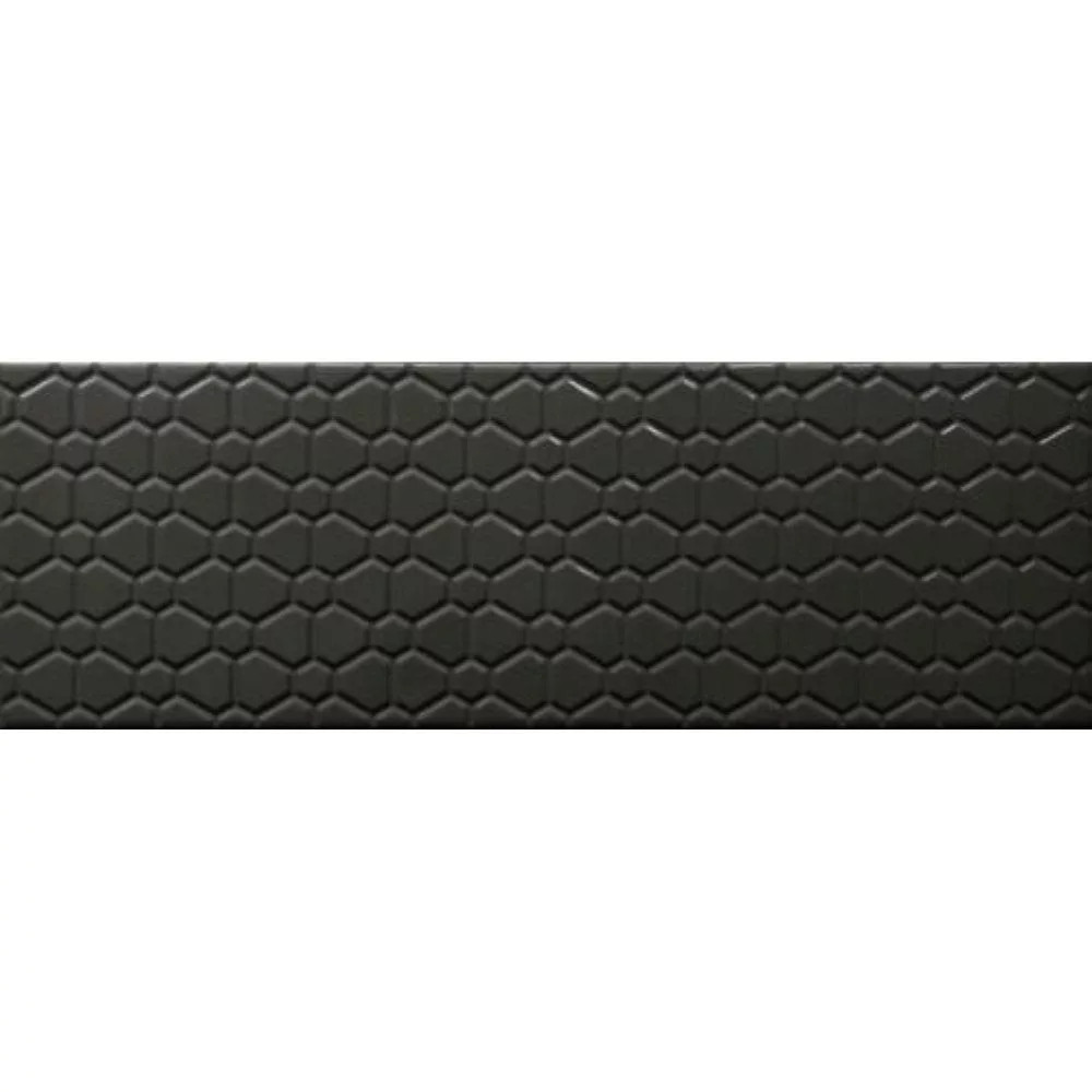 Modern fali csempe karakteres fekete színben, különleges térhatású hatszög mintázattal. A matt felület és a geometrikus struktúra elegáns, mégis vagány megjelenést kölcsönöz a falnak, így ideális választás lehet fürdőszobák, konyhai hátfalak vagy akár nappalik hangsúlyos falfelületeinek burkolására. A dekoratív relief-minta fénnyel érintkezve különösen látványos, így hangulatos és egyedi enteriőrt eredményez.