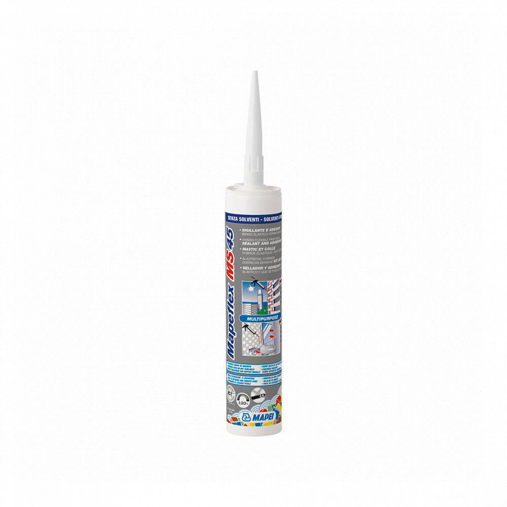 A Mapeflex MS45 szilanizált polimerekből készült, szilikon és izocianát mentes állékony ragasztó és tömítőanyag. A poliuretán termékekkel összehasonlítva könnyebb a Mapeflex MS45-öt kinyomni és elsimítani (különösen alacsony hőmérsékleten történő alkalmazásnál), szélesebb hőmérséklettartományban használható, még különösen nedves környezetben sem hólyagosodik fel, UV sugárzással szemben ellenállóbb, gyorsabban kikeményedik, hosszabb élettartamú és műanyag kartusban is hozzáférhető.