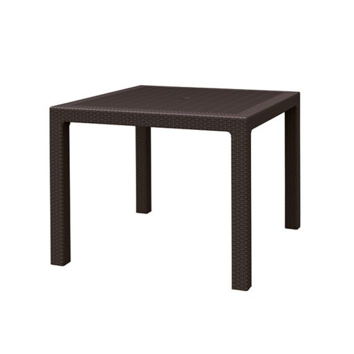Olaszországban készült ez a barna színű, kényelmes és elegáns, 95x 95x 74,5 cm-es négyszögletes magas rattan asztal.