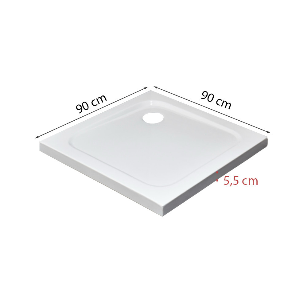 Modena Slim szögletes alacsony akril zuhanytálca, 90x90x5,5 cm-es méretben