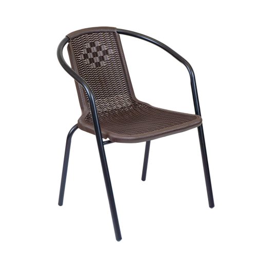 Ez egy egyszerű és nagyszerű modern kerti szék, ami rattan hatású fonott ülőfelülettel rendelkezik. Kiválóan alkalmas étkezéshez és a szabadban történő pihenéshez is. Akár lakossági, de üzleti használatra is tökéletes, például éttermek, bisztrók, szórakozóhelyek számára. Nagyon praktikus, mert egymásra helyezhető, azaz rakatolható, így a tárolása egyszerű, nem foglal sok helyet. Acélvázának köszönhetően stabil és masszív kivitel, időtálló megoldás, műanyag felületének köszönhetően könnyen tisztántartható.
