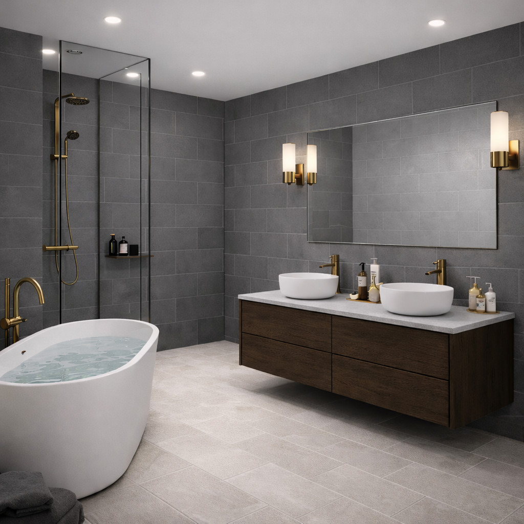 A Marengo egy elegáns, mélyebb szürke árnyalatot jelöl, amely sötétebb, mint a középszürke, de világosabb az antracitnál. Ez a tónus kiválóan alkalmas arra, hogy hangsúlyt adjon a falfelületeknek, és remek kontrasztot alkot a fehér szaniterekkel vagy világos konyhabútorokkal.