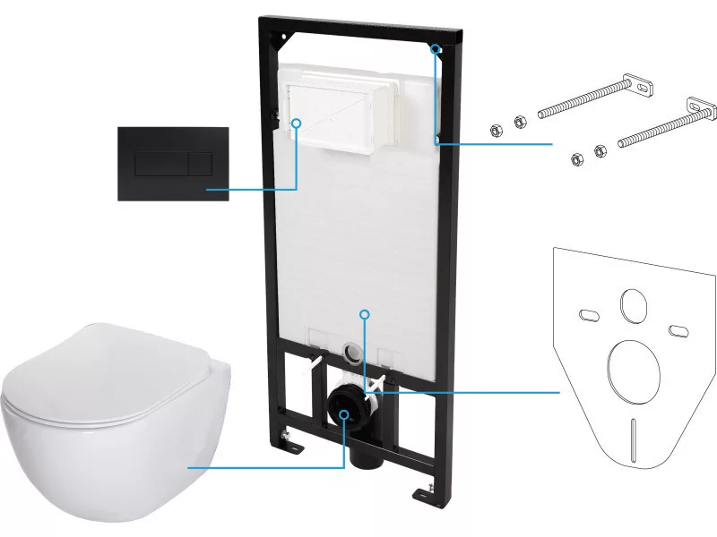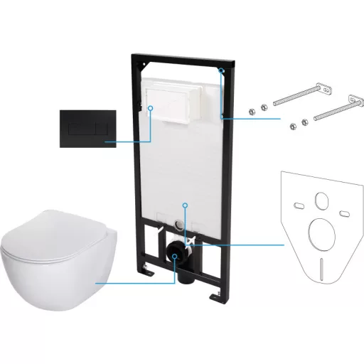 WC CSÉSZEKivitelezés: fehérAnyag: kerámiaPerem típusa: perem nélküliWC DESZKALassan záródó WC ülőke: igenSlim típusú WC ülőke: igenAntibakteriális: igenFALSÍK ALATTI KERETKeret magasságának beállítása (mm): 200Tartály kapacitása [l]: 9Dupla öblítés [l]: 3/6Gomb típusa: kétkarosKivitelezés (gomb): Nero