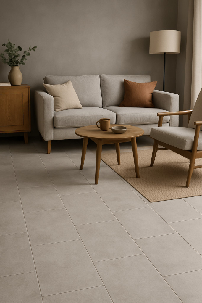 Ez a világos, homogén felületű burkolólap letisztult és modern megjelenést kölcsönöz a térnek. Semleges színe kiválóan illeszkedik meleg tónusú fa bútorokhoz, pasztell textilekhez és természetes kiegészítőkhöz. Finoman strukturált mintázata elegánsan visszafogott, így tökéletes választás lehet nappaliba, előszobába vagy akár irodai környezetbe is. A visszafogott árnyalat tágasabbá, világosabbá teszi a helyiséget, miközben időtálló és stílusos hátteret biztosít a berendezésnek.
