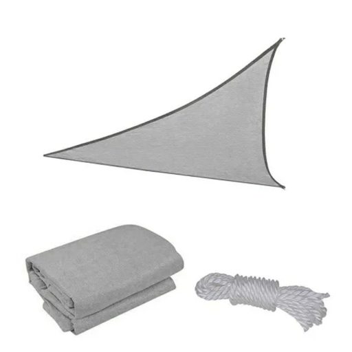 A háromszög alakú 3x3x3 méteres szürke színű napvitorla kiválóan alkalmas arra, hogy árnyékot biztosítson a kertben, teraszon, medence körül vagy bármilyen más kültéri területen. Az ilyen típusú napvitorlák gyakran használatosak kávézók, éttermek és szállodák teraszain, ahol ügyfelek kényelmesebben élvezhetik az ételeket és italokat, miközben védik őket a napsütéstől. Emellett a napvitorlák csökkentik a hőmérsékletet, így hozzájárulnak a kellemesebb, egészségesebb kültéri élményhez. A napvitorla használható otthoni vagy kereskedelmi célokra egyaránt, és ideális választás azoknak, akik szeretnének egy modern és esztétikus árnyékolót, amely könnyen telepíthető és eltávolítható.