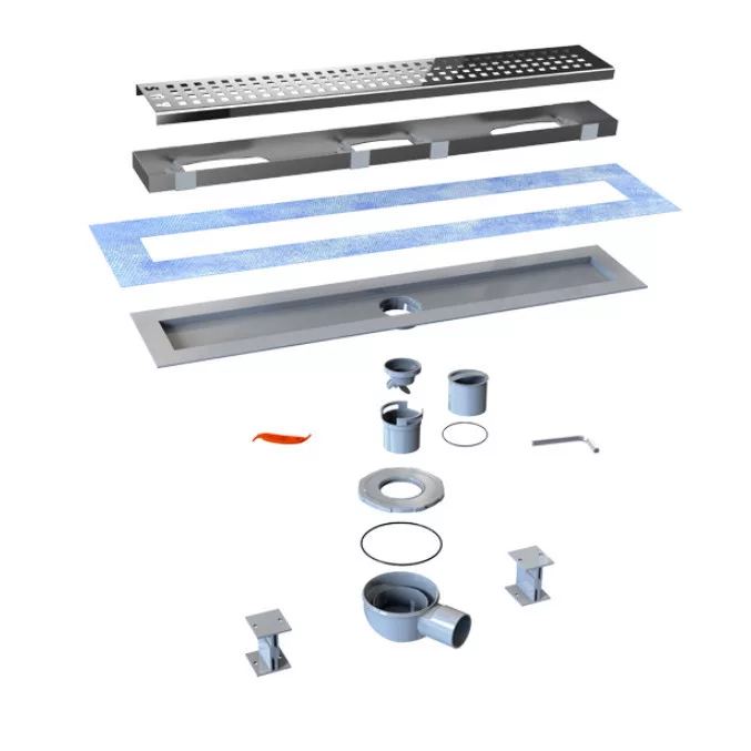 A rács és a keret 1,5 mm-es AISI 304 rozsdamentes acélból, a lefolyótest pedig ABS műanyagból készül. A monolit szigetelőlemeznek köszönhetően a szigetelőszalag felhordása praktikusabb. Ezzel a technikával a zuhanyfolyóka körüli illesztésekben előforduló hibák megelőzhetők, és a víz a zuhanyfolyókában marad. 360 fokban forgatható szifon, amely könnyen csatlakoztatható csövekhez. Könnyű beszerelés az állítható magasságú lábakkal. Az ürítési sebesség 0,8 l/mp, ez biztosítja, hogy a víz sehol se gyűljön össze zuhanyozás közben.