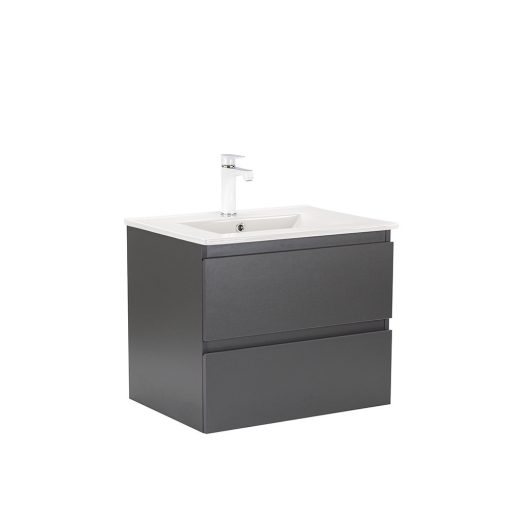 A Vario Forte 60 komplett fürdőszobabútor egy stílusos és praktikus választás modern fürdőszobához. Kompakt méretei ideálisak kisebb és közepes méretű fürdőszobákba is, a 45 fokos élzáródás modern hatást, az antracit-antracit színű dizájn elegáns megjelenést kölcsönöz a térnek. A csillapítós fiókzáródás és a felfüggesztett kivitel a kényelmet és könnyű tisztántartást szolgálja, míg a minőségi anyagok hosszú élettartamot biztosítanak.