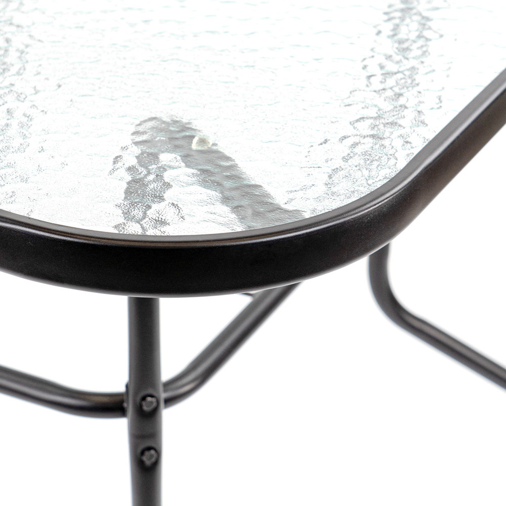 Vella fémvázas üveg kerti asztal fekete