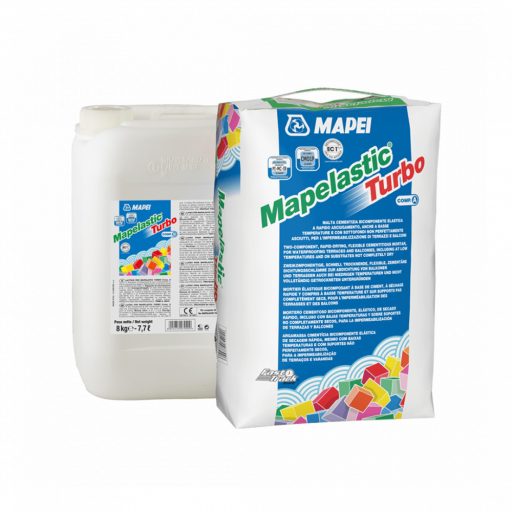 A Mapelastic Turbo a MAPEI kutatólaboratóriumában kifejlesztett, olyan különleges polimerrel kevert terméke, amely képes a Mapelastic száradási idejének felgyorsítására. Ez a különleges összetétel minden más termékhez képest meggyorsítja a kivitelezést alacsony hőmérsékleten és olyan aljzatokon, amelyek nem teljesen szárazak.