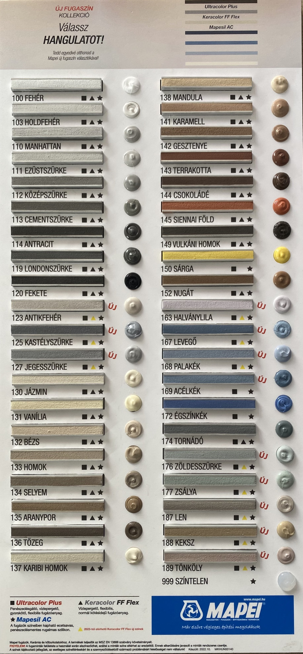 a MAPEI színskála 40 színében