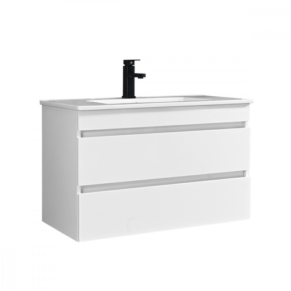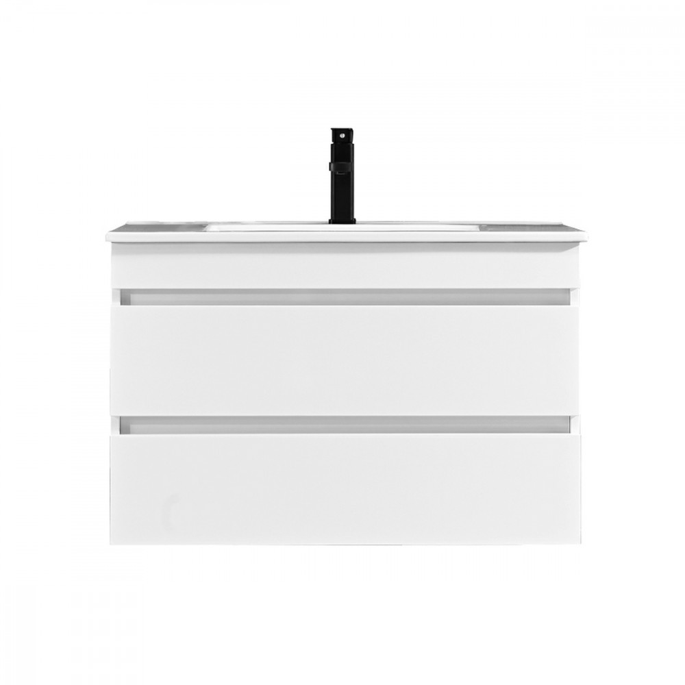 Cube 80 alsó fürdőszobabútor kerámia mosdóval 2 fiókos, magasfényű festett fehér