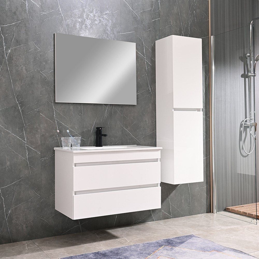 A fürdőszoba bútor kevés helyet foglal viszont rendelkezik két tágas fiókkal ahol kényelmesen elférnek a fürdőszobai pipere eszközök. Kevés helyigénye miatt kisebb fürdőszobák berendezésére is alkalmas, például panel lakásokban. A termék magasfényű festett fronttal és korpusszall emellett színben passzoló élzárókkal van ellátva. A fürdőszoba bútor felfüggesztet kivitelben kapható.