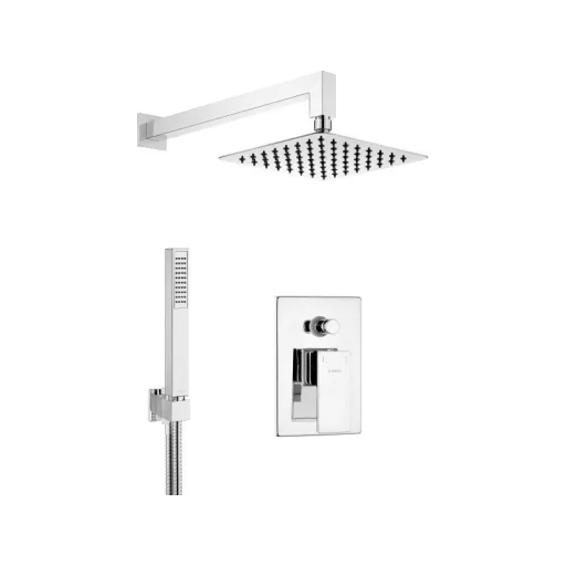 Kivitelezés: krómCsaptelep típusa: keverő, egykarosBeszerelési mód: falsík alattiZUHANYFEJAlak: négyzetAnyag: acél 304, sárgarézSzélesség [mm]: 200Hosszúság [mm]: 200Funkciók száma: 1Áramlások típusai: esőztetőKÉZIZUHANYFunkciók száma: 1Áramlások típusai: esőztető