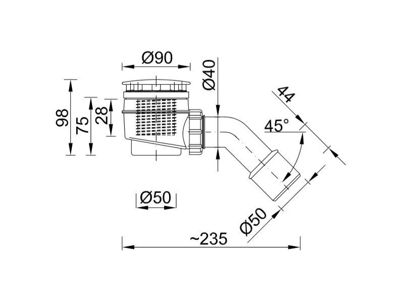 Zuhanytálca szifon O50 mm, krómozott, tisztítható bűzzárral