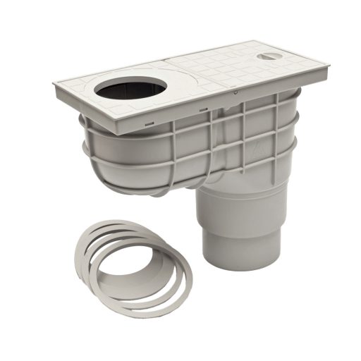 FixTrend ereszbekötő, lombfogó kosárral, rács nlk, alsó kifolyású, szürke, DN110/125