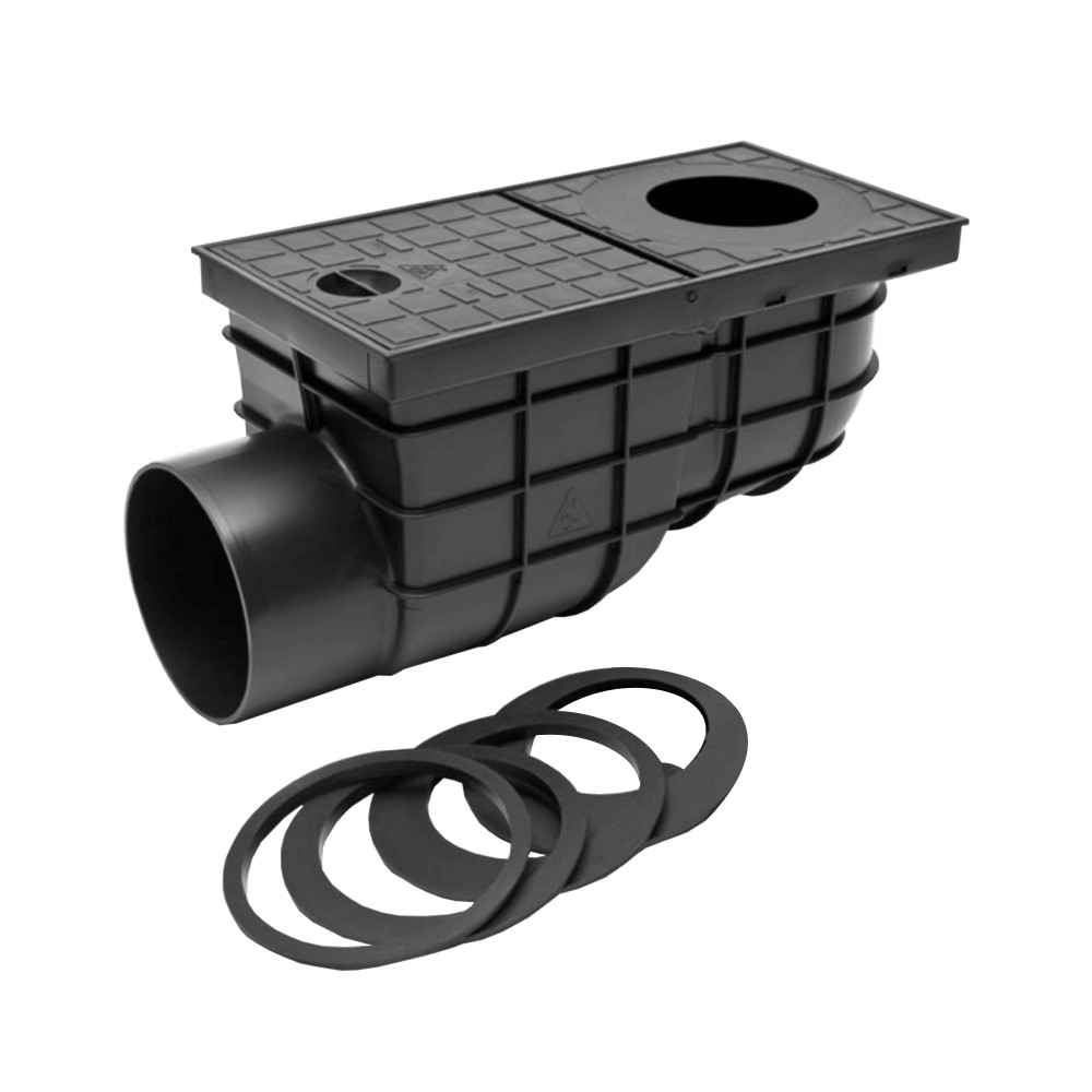 FixTrend univerzális ereszbekötő, műanyag, rács nlk, oldal kifolyású, fekete, DN110