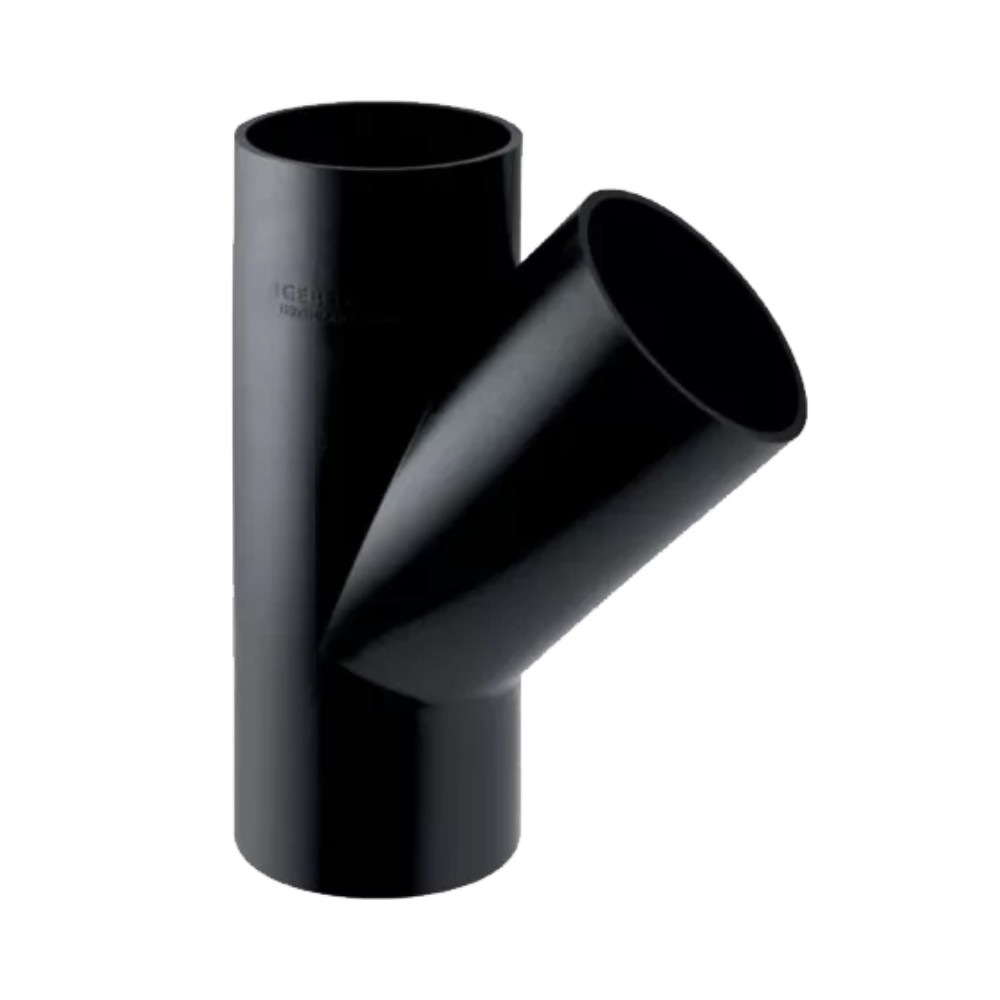 Geberit PE-HD 45°-os, 110/50 mm-es szűkített elágazó idom.