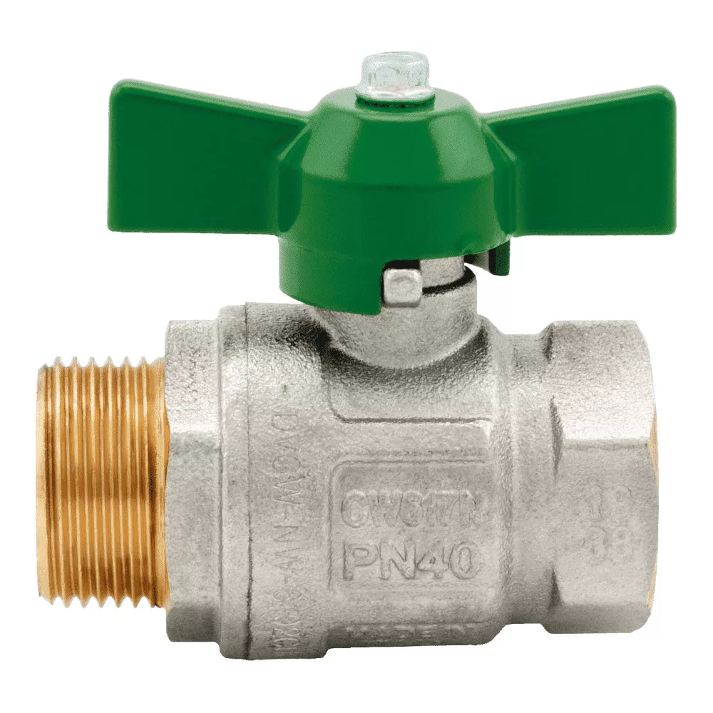 A szelep nikkelezett sárgaréz házzal készül, amely hosszú élettartamot és korrózióállóságot biztosít. A zöld színű alumínium T-fogantyú kényelmes és gyors működtetést tesz lehetővé, ezért ideális választás vízellátó rendszerekhez és szerelési feladatokhoz.