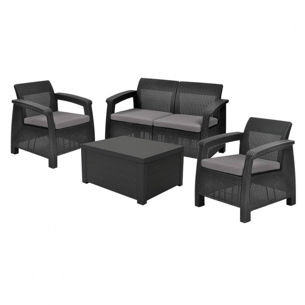 Corfu Box set kerti bútor garnitúra, grafit színben, világos szürke párnával