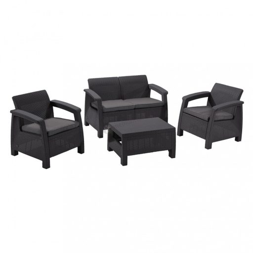 Corfu set kerti bútor garnitúra, grafit színben, világos szürke párnával