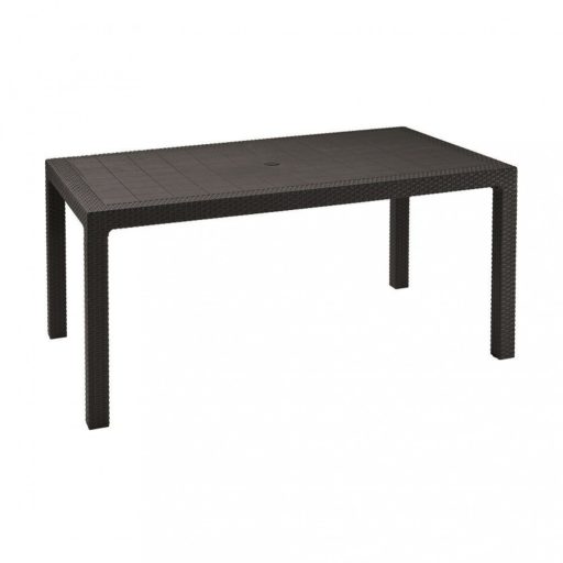 A Curver Melody kerti asztal praktikus és tartós ajánlat, vonzó áron. kinézete a technorattan anyagára elékeztet, de valójában egy kiváló minőségű müanygaból készül. A Melody asztallap sík, így lehetővé teszi az edények egyszerű elhelyezését rajta. Az asztal közepén egy nyílás van a napernyő részére.. A Melody asztal műanyagból, polipropilénből készül , ellenáll a kedvezőtlen időjárási viszonyoknak. Egész nyáron a szabadban tárolhatja anélkül, hogy veszítene színéböl.