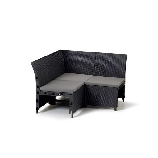 A letisztult grafit színű, rattan hatású kivitel eleganciát kölcsönöz a bútornak, mely tökéletesen harmonizál a legtöbb kültéri dekorációval.