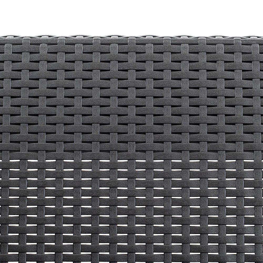 A modern, sötétszürke rattan hatású felület esztétikus és rendkívül időjárásálló – nem fakul, nem reped, és még UV-védelemmel is rendelkezik. A puha ülőpárnák a csomag részei, így rögtön használatba is veheted.