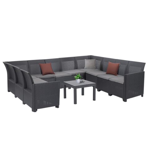 A Claire XII 10 személyes sarokgarnitúra orlando asztallal pontosan ezt kínálja: