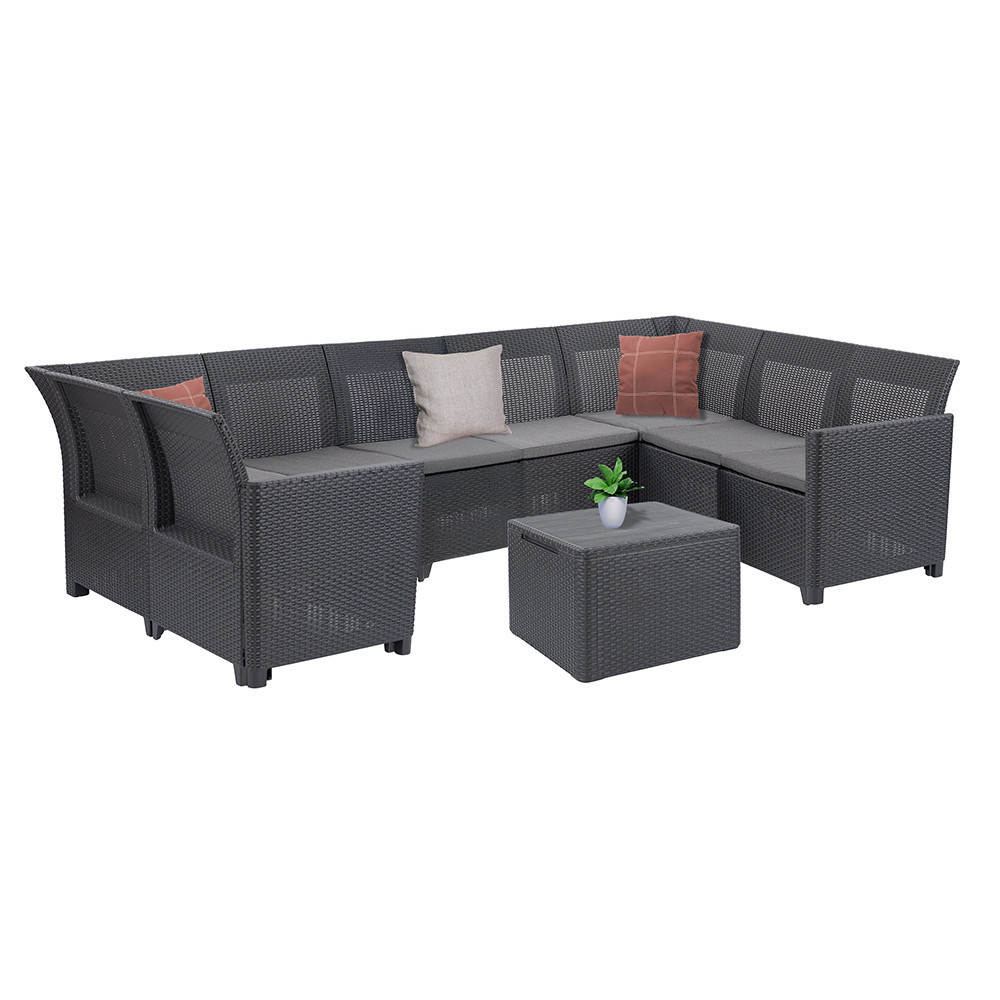 Claire VII 8 személyes sarokgarnitúra párnatartós asztallal grafit