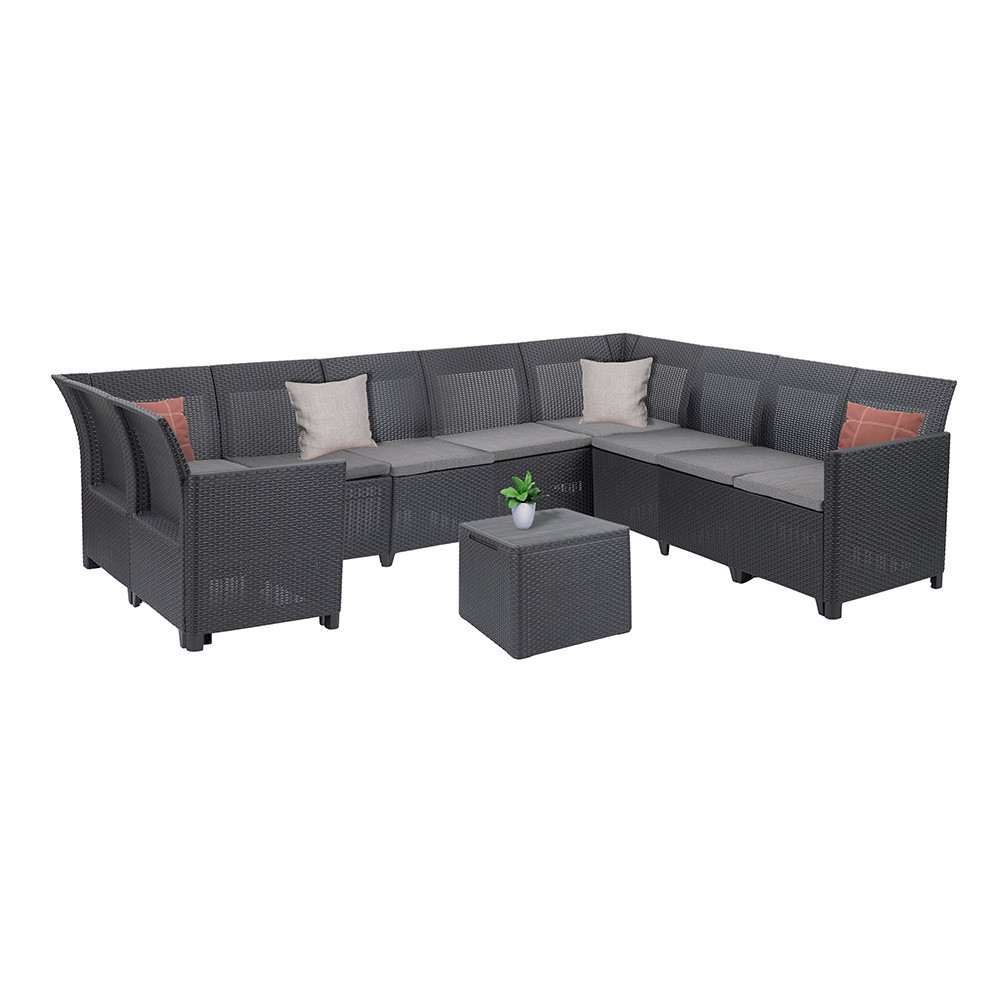 Claire IX 9 személyes sarokgarnitúra párnatartós asztallal grafit