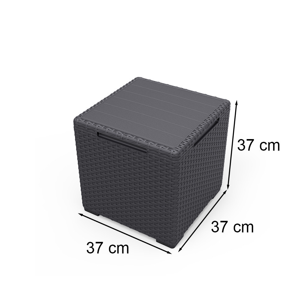 A Vigo kerti tárolós asztal tökéletes választás, ha egy több funkciós bútort keresel a teraszra vagy az erkélyre. A grafit színű, fonott megjelenésű asztal nemcsak egyedi és modern kiegészítője a teraszodnak, hanem hasznos tárolóhelyként is szolgál.