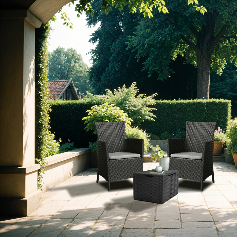 Válaszd ezt a szettet, ha olyan tartós, stílusos és kényelmes bútorokat keresel, amelyek hosszú távon is megőrzik szépségüket és funkciójukat. Az elegáns rattan hatású kialakítás és a praktikus tárolóhelyek garantáltan minden igényt kielégítenek, legyen szó pihenésről vagy szórakozásról a szabadban.