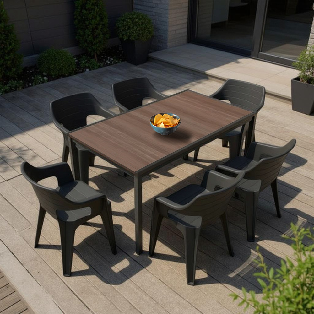 Ravello 6+1 kerti bútor garnitúra szett dió-fekete – Kompakt és praktikus kültéri étkező szett
