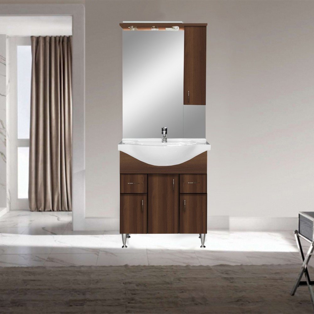 A funkcionalitás mellett természetesen a bútor megjelenésére is nagy figyelmet fordítottak. Aida dió színének és klasszikus vonalainak köszönhetően harmóniát teremt az összes fürdőszoba hangulatában. A bútor anyaghasználatából adódóan (bútorlap) a korpusz oldal színe eltérhet a magasfényű MDF front színétől.