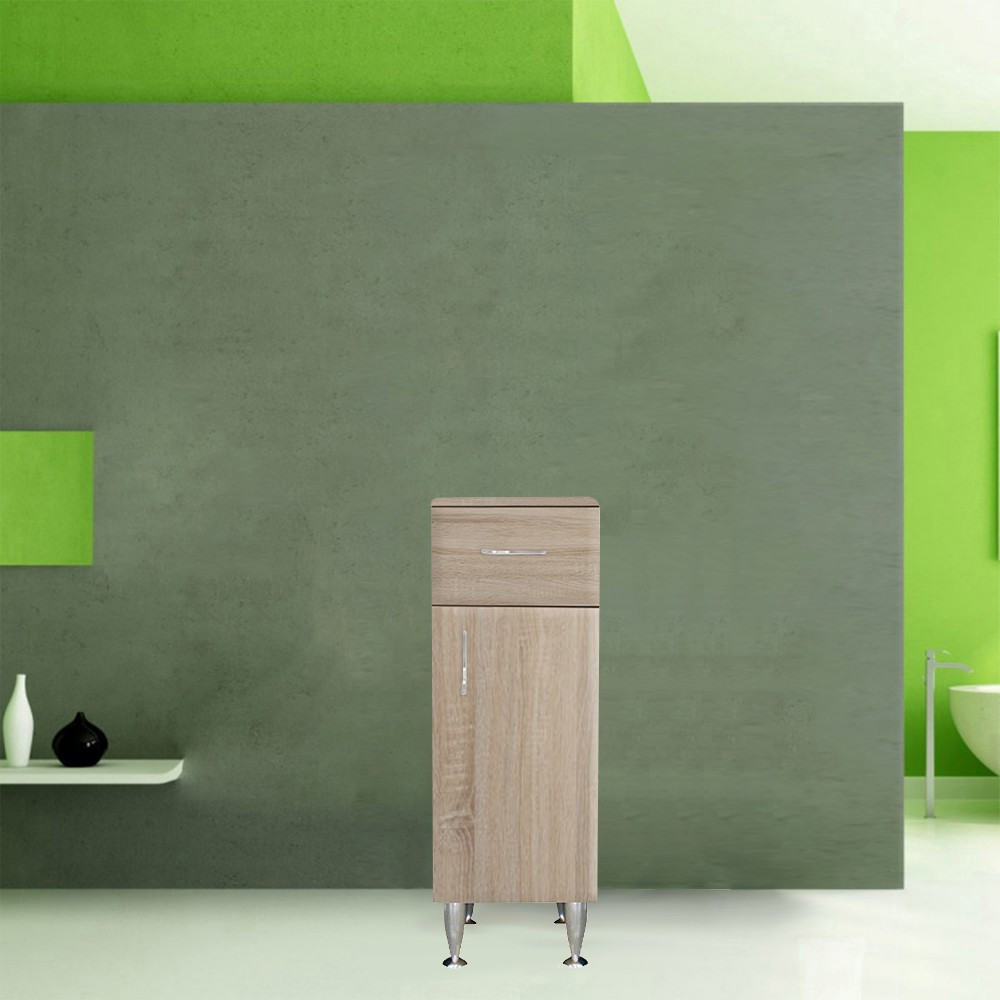 A fürdőszobabútor kevés helyet foglal viszont tágas pakolórésszel rendelkezik ahol kényelmesen elférnek a fürdőszobai pipere eszközök. Kevés helyigénye miatt kisebb fürdőszobák berendezésére is alkalmas, például panel lakásokban. A termék magas minőségű bútorlapból készül és színben passzoló élzárókkal van ellátva.