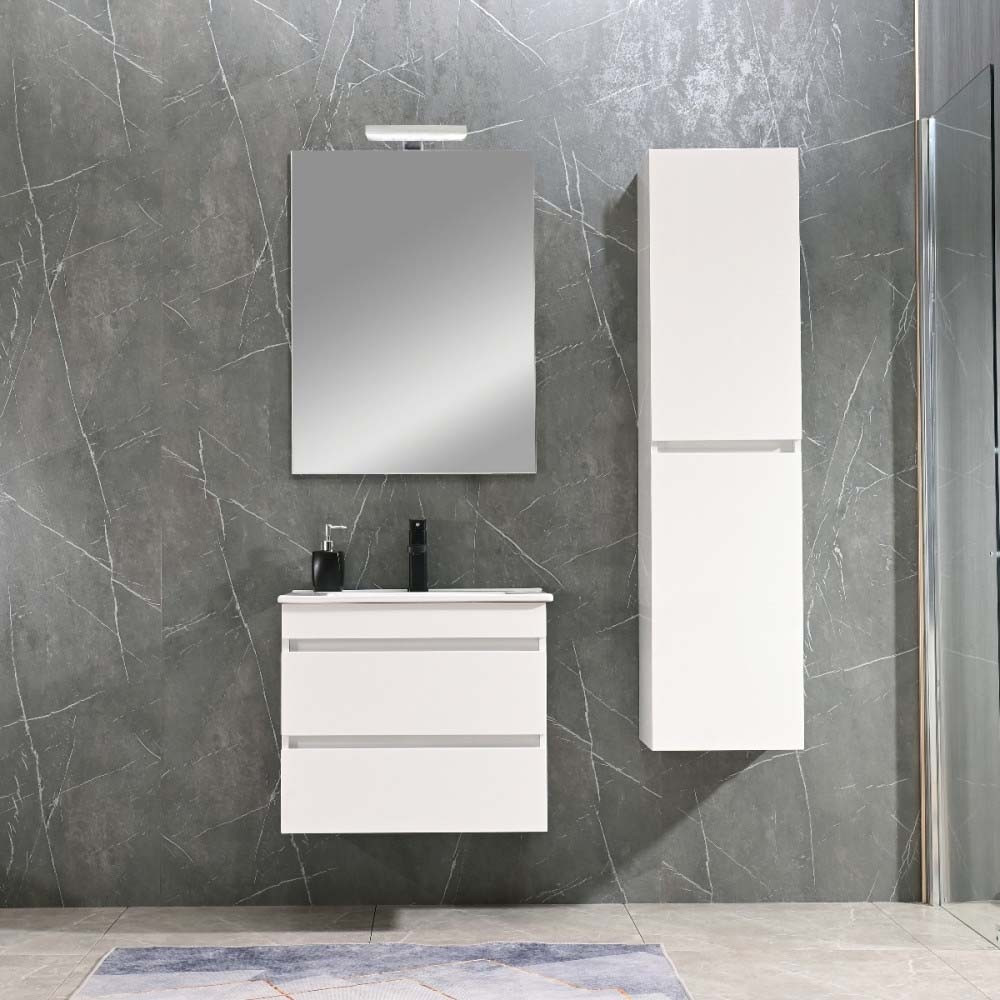 Az alsó bútorhoz emellett tartozik egy 60-as Cube tükör is. A termék magasfényű festett fronttal és korpusszal emellett színben passzoló élzárókkal van ellátva. A fürdőszoba bútor felfüggesztett kivitelben kapható.