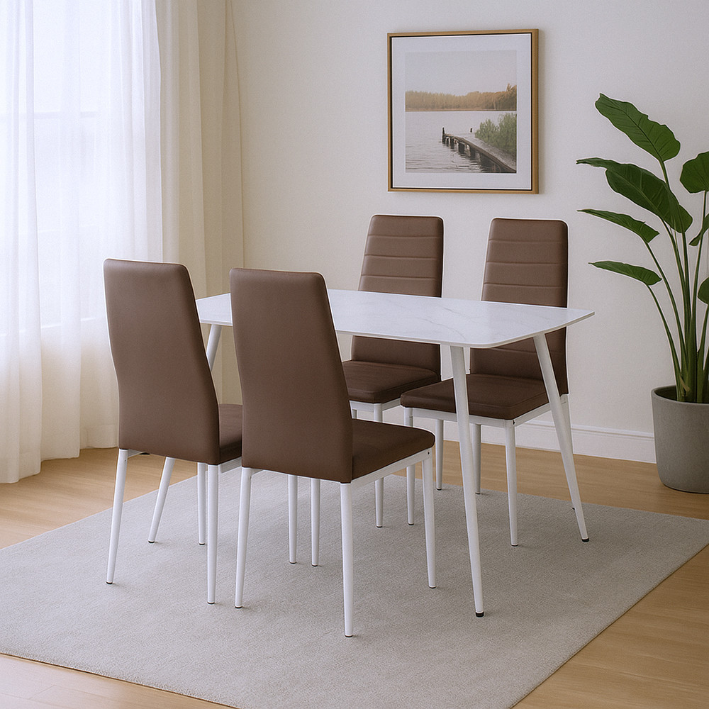 Jenna 4+1 étkezőgarnitúra – barna dizájn, fehér kontraszt, letisztult karakter