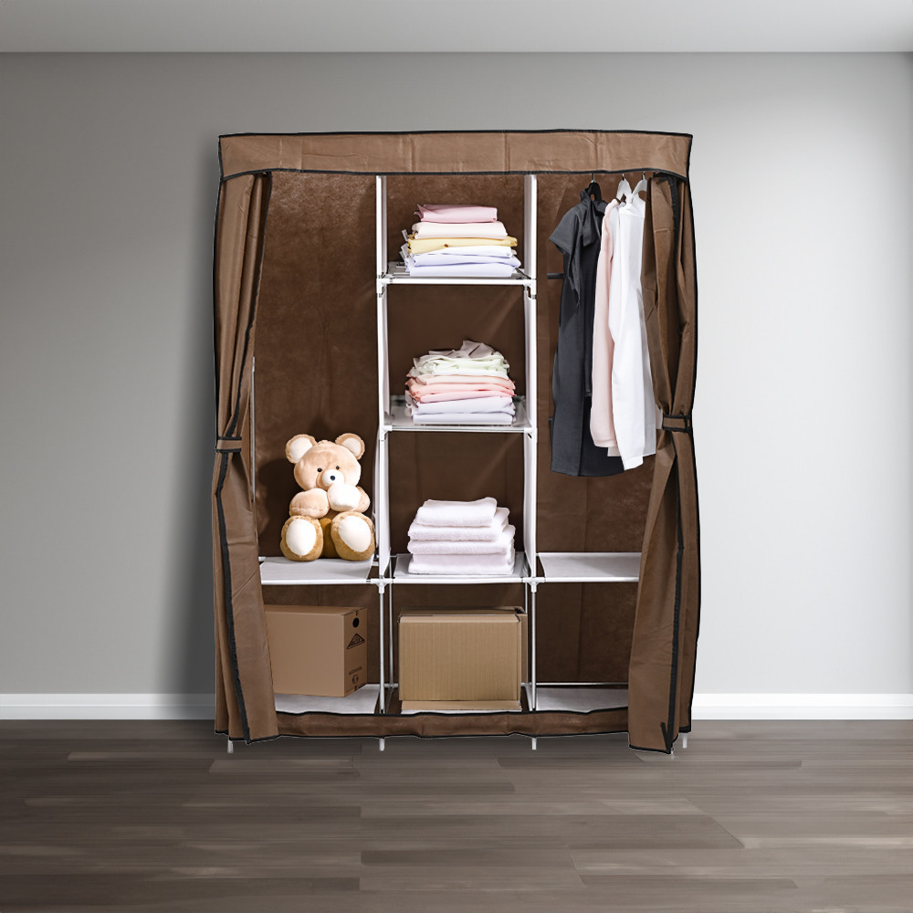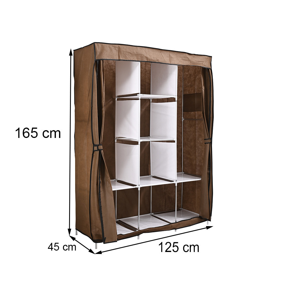 • Anyag: Tartós fémváz és magas minőségű szövetborítás, amely megóvja a ruhákat a portól. A színes védőhuzat feldobja a környezetet, és a cipzáras ajtó biztonságos használatot garantál.