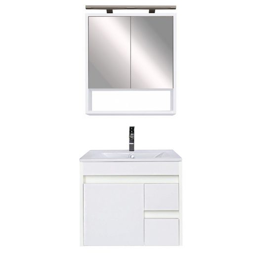 A fürdőszoba bútor tágas kialakítással rendelkezik ahol kényelmesen elférnek a fürdőszobai pipere eszközök. Kompakt kialakítása miatt kisebb fürdőszobák berendezésére is alkalmas, például panel lakásokban. A termék magas minőségű bútorlapból készül és színben passzoló élzárókkal van ellátva. A fürdőszoba bútor felfüggesztett kivitelben kapható.