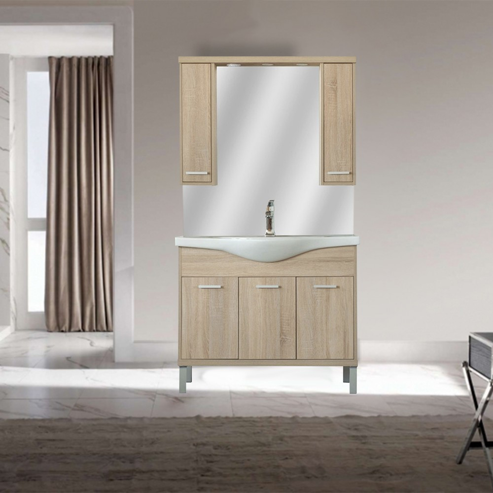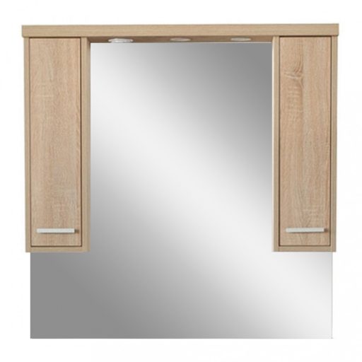 A tükrös szekrény kevés helyet foglal viszont rendelkezik két tárolós résszel ahol kényelmesen elférnek a fürdőszobai pipere eszközök. Kevés helyigénye miatt kisebb fürdőszobák berendezésére is alkalmas, például panel lakásokban. A termék magas minőségű bútorlapból készül és színben passzoló élzárókkal van ellátva. A fürdőszoba bútor felfüggesztett kivitelben kapható.