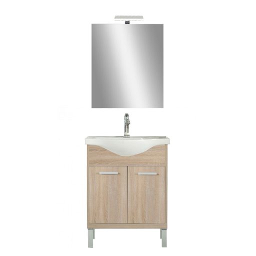 A fürdőszobabútor kevés helyet foglal viszont tágas alsó és felső szekrénnyel rendelkezik ahol kényelmesen elférnek a fürdőszobai pipere eszközök. Kevés helyigénye miatt kisebb fürdőszobák berendezésére is alkalmas, például panel lakásokban. A termék magas minőségű bútorlapból készül és színben passzoló élzárókkal van ellátva. A fürdőszoba bútor mosdóval együtt kapható.