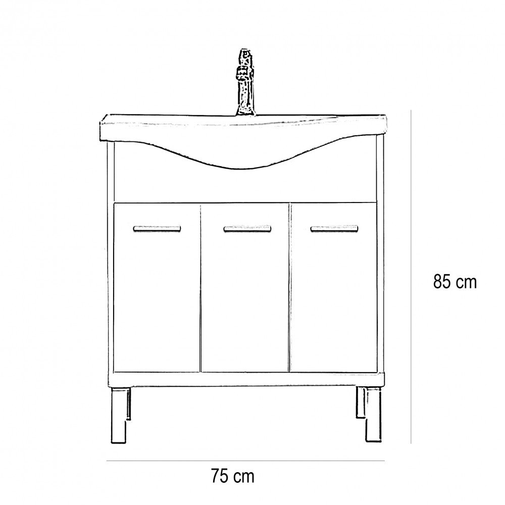 A fürdőszobabútor kevés helyet foglal viszont tágas alsó és felső szekrénnyel rendelkezik ahol kényelmesen elférnek a fürdőszobai pipere eszközök. Kevés helyigénye miatt kisebb fürdőszobák berendezésére is alkalmas, például panel lakásokban. A termék magas minőségű bútorlapból készül és színben passzoló élzárókkal van ellátva. A fürdőszoba bútor mosdóval együtt kapható.