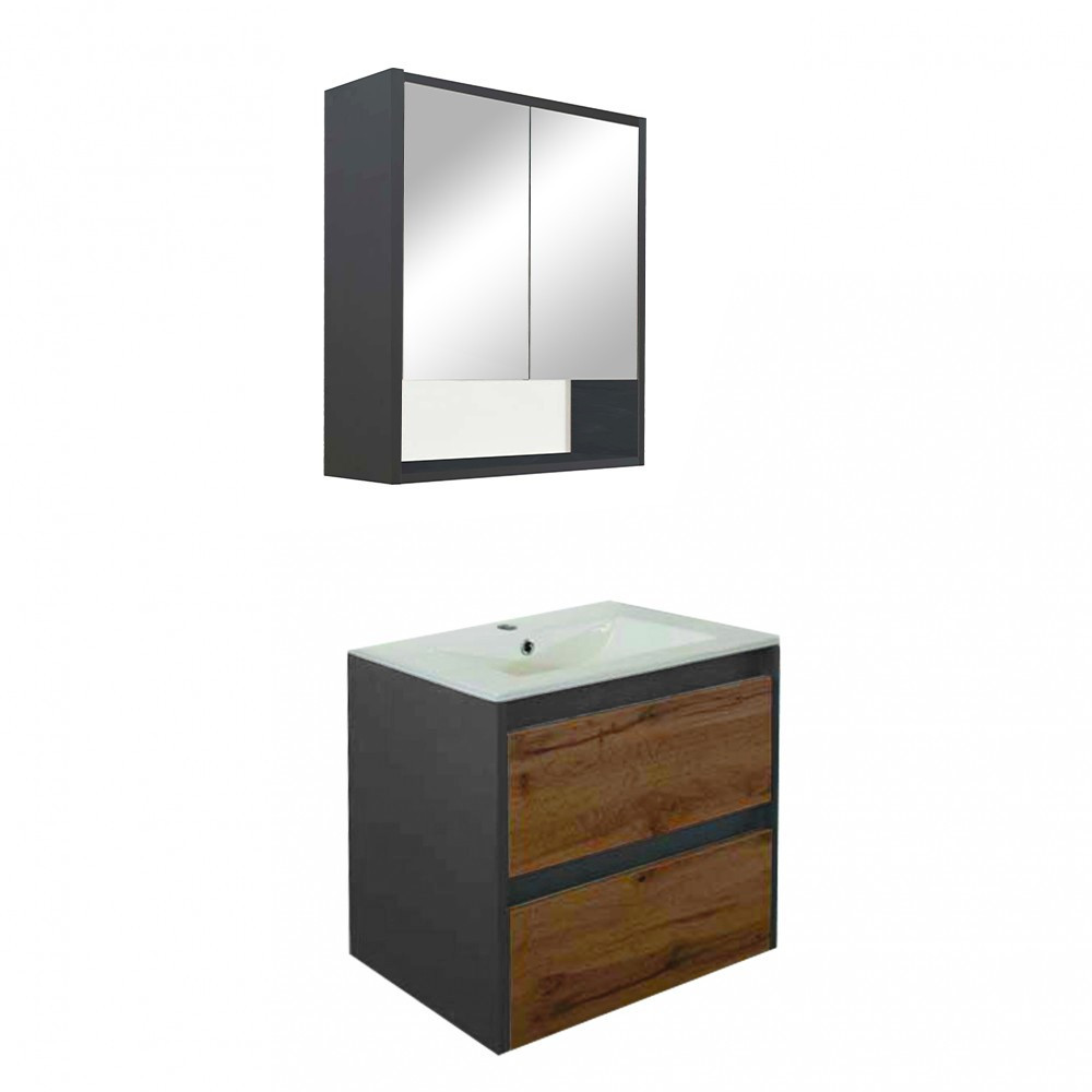 A fürdőszoba bútor kevés helyet foglal viszont rendelkezik két tágas fiókkal és egy felső bútorral is, ahol kényelmesen elférnek a fürdőszobai pipere eszközök. Kevés helyigénye miatt kisebb fürdőszobák berendezésére is alkalmas, például panel lakásokban.