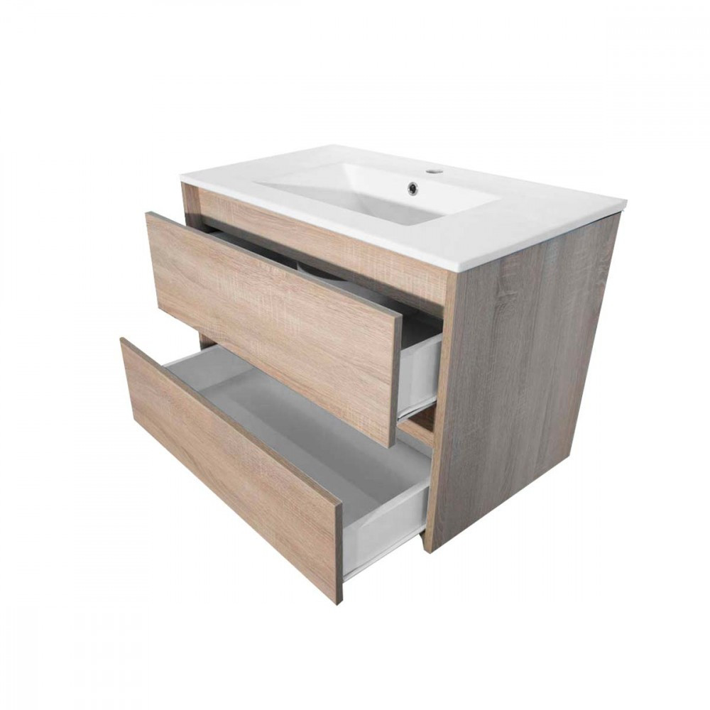 A csomag részét képzi egy méretben passzoló kerámia mosdó is, így ezt nemkell külön beszereznie. A mosdó elkészítésekor kiváló minőségű kerámiát alkalmaztak, ezzel garantálva az időtállóságot. A mélymedencével ellátott mosdóban egy csaptelepnek van kialakított hely.